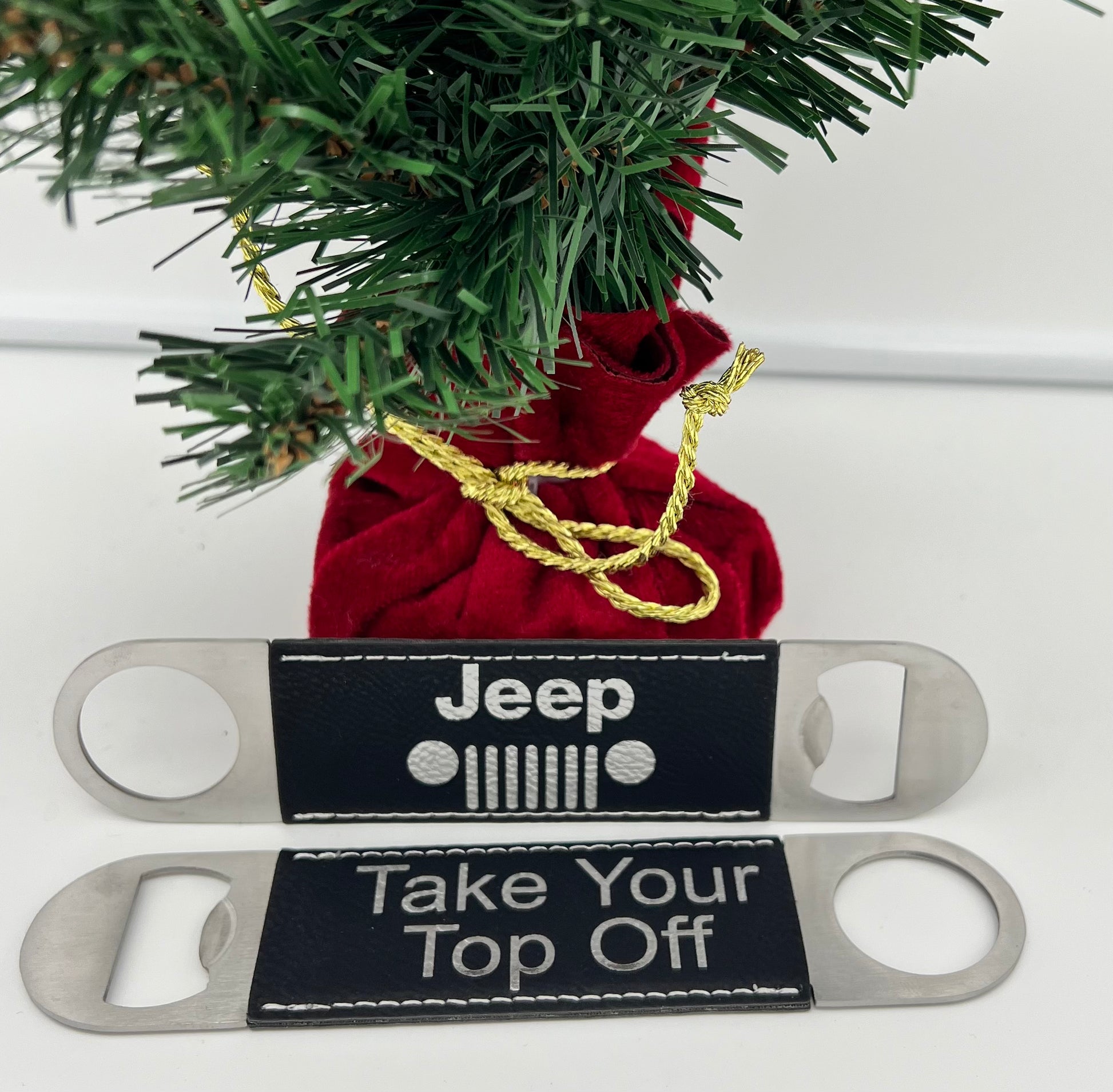 Engraved on both sides: Jeep with grill on one side, Take Your Top Off on the other side.